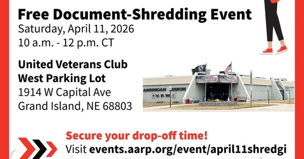 “Safely disposing of unwanted, sensitive documents is an important step in protecting your identity from bad actors,” shared Jess Kinser, AARP Nebraska’s Associate State Director of Communications. “As part of AARP’s Fraud Prevention Awareness Month, we’re proud to join communities across the country in hosting local fraud‑prevention blitzes. We’re excited to bring this free document‑shredding event to the Grand Island community and honored to volunteer alongside Nebraska’s veterans, service members, and their families in the fight against fraud.”