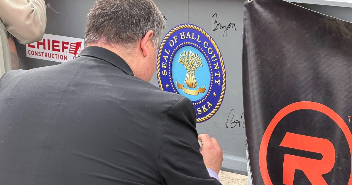 As part of the ceremony, the beam was signed by dignitaries from both the construction team and Hall County, a traditional gesture symbolizing progress and collaboration.