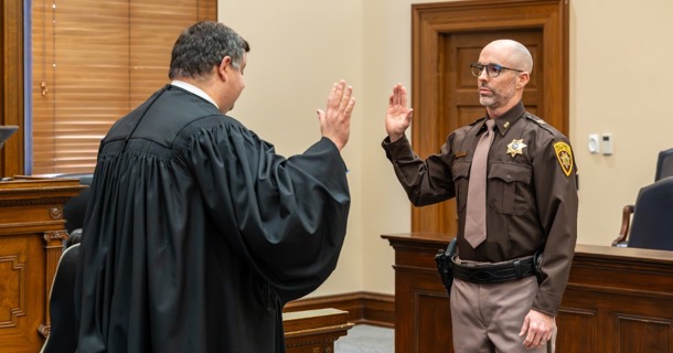 Grand Island, Neb. — December 24, 2025 — Josh Berlie was sworn in as Hall County Sheriff on Tuesday, December 23, during a ceremony held at the Hall County Courthouse. Judge Lee administered the oath of office as Berlie was surrounded by his family, friends, and colleagues.